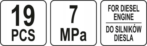 Profesjonalny zestaw do pomiaru ciśnienia kompresji w cylindrach silników wysokoprężnych (diesel). Pomiaru można dokonać przez świece żarowe lub przez wtryskiwacz. Przeznaczony do samochodów osobowych, dostawczych i ciężarowych, w tym do aut z silnikami TDI, HDI, SDI, DTI, JTD, DID z wtryskiem bezpośrednim i pośrednim.