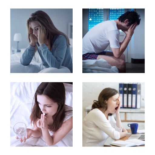 - Bezsenność i senność, słaba jakość snu i trudności z zasypianiem.