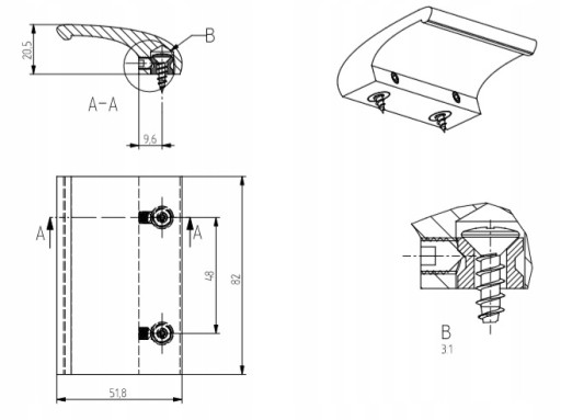 Pochwyt ALUminiowy w wybranym z dostępnych w/w kolorach.