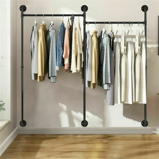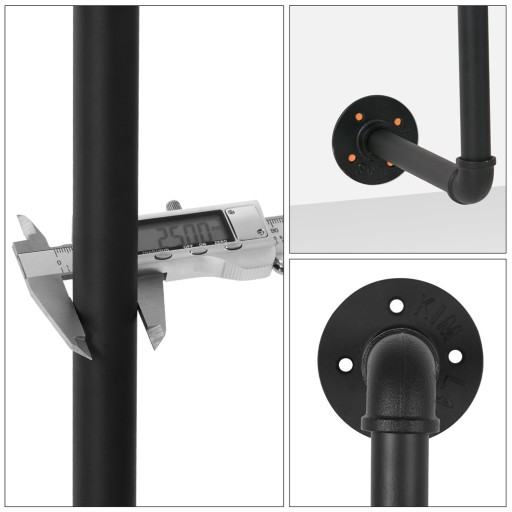 【Funkcjonalny i interfejs】 Wieszak na ubrania z rur przemysłowych, może być używany do stojaka ekspozycyjnego, wieszaka na ubrania. Na długość 205 cm można wprowadzić prawie wszystko, w tym płaszcze, spódnice, T-shirty, garnitury, mundurki szkolne, spodnie i tak dalej. Będzie kosztować mniej pieniędzy niż szafa, ale więcej