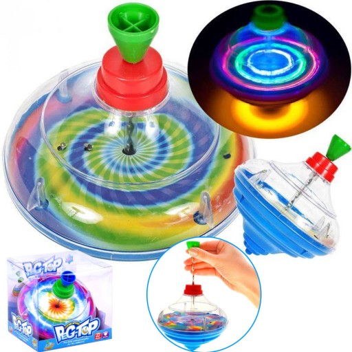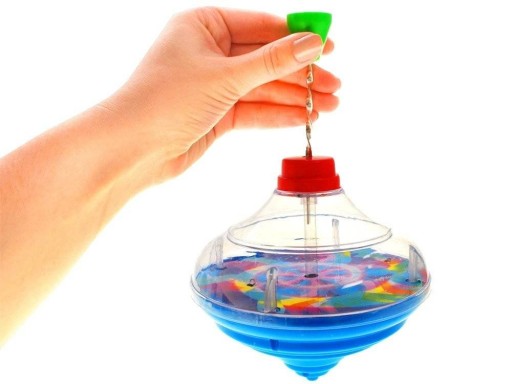 Bąk, tradycyjny bączek uniwersalna, ponadczasowa zabawka, którą bawili się nasi rodzice, my sami a teraz kolej na nasze dzieci. Zabawka wielopokoleniowa nadal na czasie bez względu na panującą modę. Zabawka bardzo prosta w obsłudze, należy nacisnąć tłok aby bączek zaczął wirować wokół własnej osi i obrazek na bączku mienił się kolorami. Do urozmaicenia zabawy bączek ma możliwość włączenia migającego światełka, wraz z wesołą muzyką. Bączek wykonany z plastiku z uroczą kolorową grafiką.