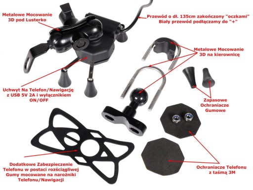 - Motocyklowy Uchwyt typ X z gniazdem USB