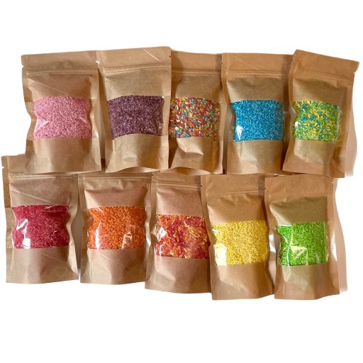 Nasz ryż jest wyjątkowy, ponieważ jest 100% naturalny! Barwiony spożywczymi barwnikami, więc nie ma obaw, że dziecku zaszkodzi.
