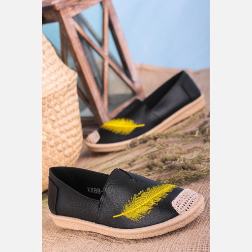 Czarne espadryle Casu slip on z piórkiem XX88-01
