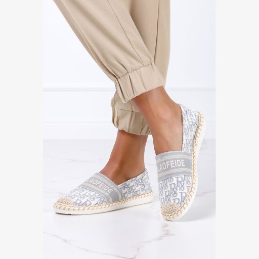 Szare espadryle z napisami slip on Casu NB538P