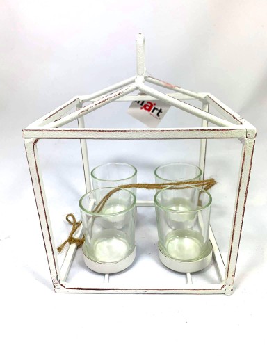 Przepiękna bielona latarnia firmy: INART metalowa na 4 świeczki.