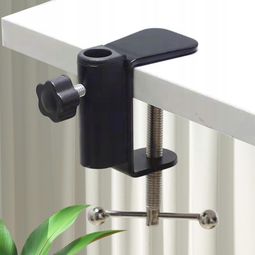Zacisk na biurko z ramieniem mikrofonu: Ten zacisk do montażu na biurku umożliwia zamocowanie stojaka na ramię mikrofonu do biurka, słupków łóżka, kredensów i zagłówków.