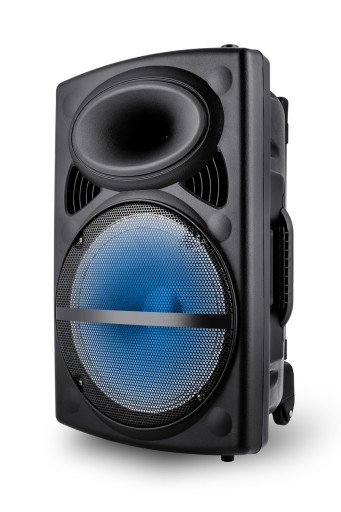 Kolumna aktywna VK w zestawie z pilotem, idealna jest na uroczystości szkolne, konferencje, wystąpienia publiczne i wszędzie tam gdzie dźwięk powinien dotrzeć do dużej grupy osób. Kolumna posiada funkcję łączności przez Bluetooth oraz wejście SD, USB, dzięki czemu może odtwarzać nagrania z najpopularniejszych nośników. Dodatkowe wejście gitarowe wzmocni dźwięk w czasie koncertu na żywo. Kolumna wykonana jest z wysokiej jakości materiałów, a dzięki kółkom można w łatwy sposób przetransportować ją w dowolne miejsce.