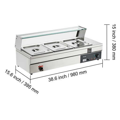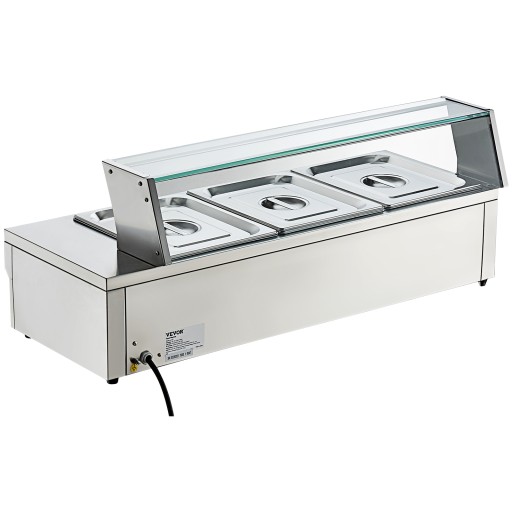 3 tace w zestawie: komercyjny podgrzewacz do żywności jest wyposażony w 3 tace o pojemności około 11L (pojedynczo o wymiarach 26.5 x 32.5 x 15 cm), które mogą być używane do przechowywania zarówno mokrego jak i suchego jedzenia. Możesz podgrzewać jedzenie bezpośrednio na tacy lub użyć jej do trzymania standardowej patelni (patelnie nie są dołączone), aby utrzymać warzywa, hot-dogi, jajka, bekon i inne jedzenie gorące i pyszne dla gości.