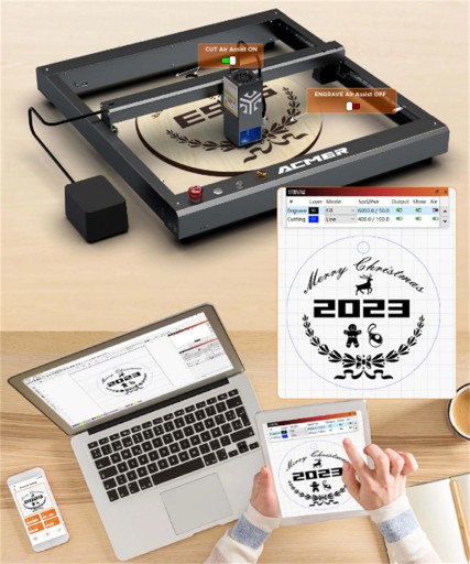 ACMER P2 to wspólny laser hobbystyczny, który łączy w sobie funkcję możliwą funkcji bezpieczeństwa z możliwością grawerowania lasera diodowego klasy konsumenckiej - 33 waty.