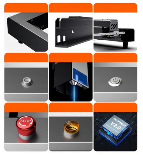 - ACMER P2 33W jest wyposażony w podwójny układ procesora ESP32.Wbudowana 256-bitowa skala kolorów, aby uzyskać dokładniejszy efekt grawerowania i wyższy efekt kontrastu.