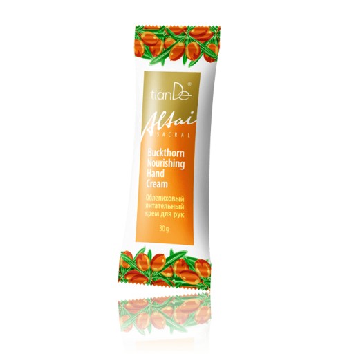 Odżywczy krem do rąk z rokitnikiem z serii Altai Sacral intensywnie odżywia i nawilża. Odmładza skórę rąk. Pielęgnuje skórki i płytkę paznokciową.