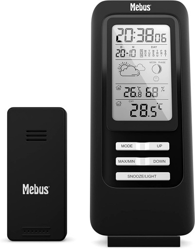 - Cyfrowy termometr do wnętrz i na zewnątrz oraz higrometr: wystarczy rzut oka na aktualną temperaturę w pomieszczeniu i na zewnątrz w °C lub °F oraz wilgotność w pomieszczeniu w %.