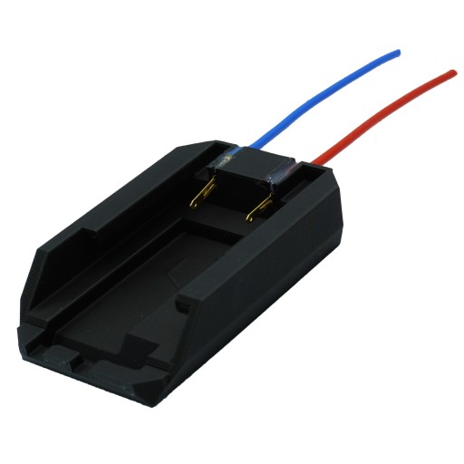 - Adapter jest zaprojektowany tak aby po włożeniu akumulatora do adapteru ten zatrzasnął się uniemożliwiając wypadnięcie.
