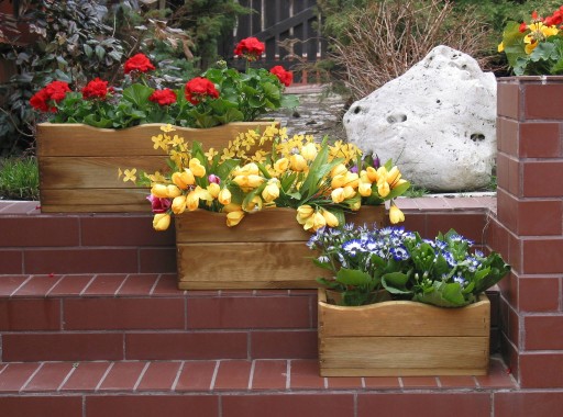 Skrzynka na kwiaty wykonana z certyfikowanego drewna sosnowego, zabezpieczona impregnatem ciśnieniowo ,odporna na warunki atmosferyczne.