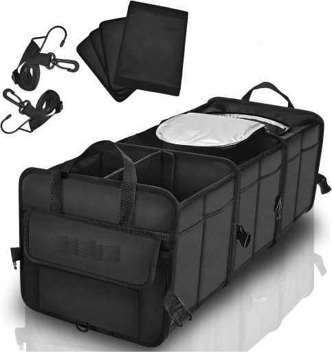 Bardzo mocny sztywny organizer samochodowy z wodoodpornej tkaniny z przegrodą na mrożonki i zimne napoje.