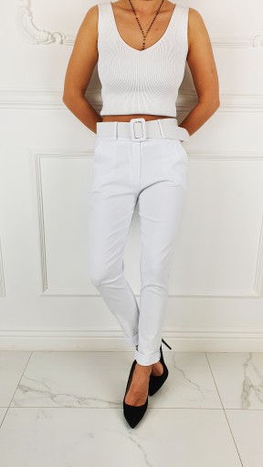 Elastyczne spodnie cygaretki, posiadają wysoki stan. Świetne połączeniu ze szpilkami, dzięki swojej uniwersalności, pasują niemal do każdej stylizacji. Elastyczny materiał podkreśla kobiecą sylwetkę. Spodnie są dopasowane, rozciągają się. Podkreśl swoje kobiece kształty! Spraw, by Twój codzienny Look był niepowtarzalny.