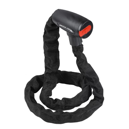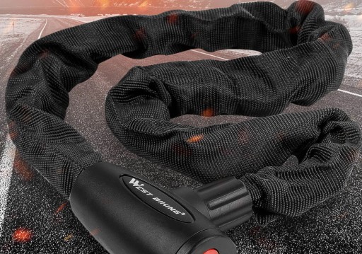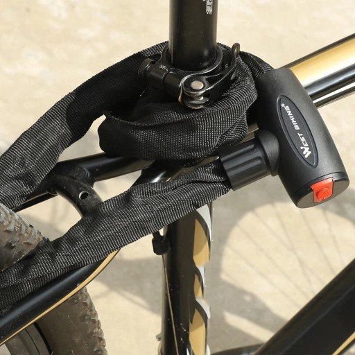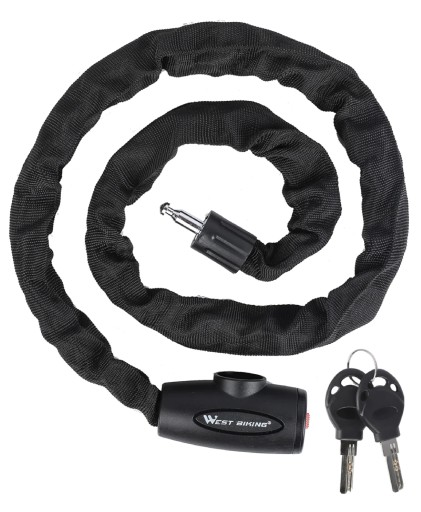 - Wyjątkowo wytrzymały, osłonięty materiałem łańcuch blokada do roweru