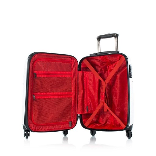 - walizka wyłożona estetyczną podszewką, wewnątrz pasy zabezpieczające bagaż przed przemieszczaniem