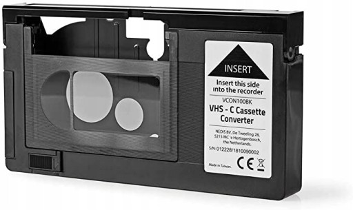 Włóż taśmę VHS-C do konwertera kasetowego Nedis® VCON110BK VHS-C, aby nagrać lub obejrzeć ją za pomocą standardowego magnetowidu VHS. Włóż baterię AA (brak w zestawie),aby automatycznie otworzyć przód i załadować lub wyładować taśmę. Należy pamiętać, że taśmy 8 mm nie są kompatybilne z VCON110BK. Można używać tylko tych, które noszą logo VHS-C.