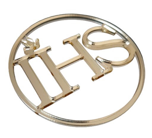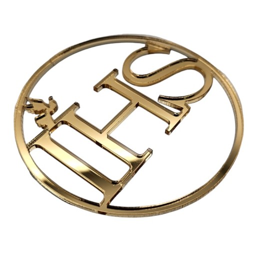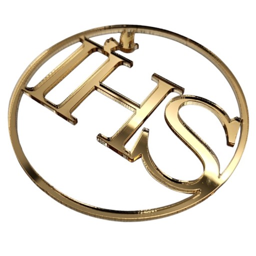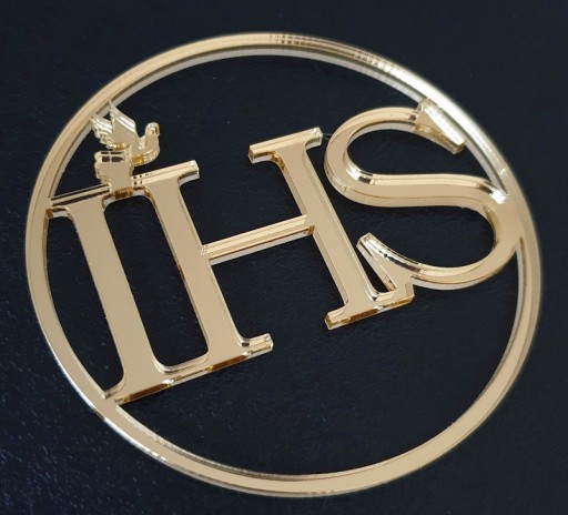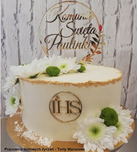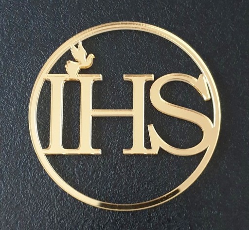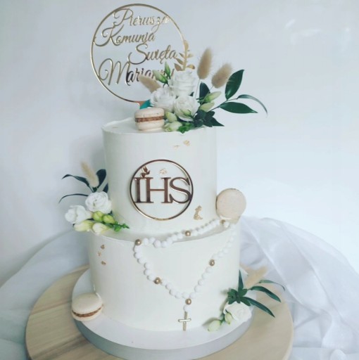 Złoty dekor na bok tortu komunijnego - IHS złote lustro