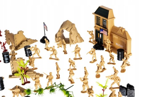 Ten wyjątkowy zestaw z pewnością przypadnie do gustu każdemu małemu miłośnikowi militariów. Zestaw zawiera: żołnierzy, broń, czołgi, samoloty, łódź podwodną, działa, budynki, zasieki, drzewa i wiele innych akcesoriów. Pozwoli to na wielogodzinną zabawę zarówno samemu, z rówieśnikami jak i w gronie rodzinnym. To doskonały sposób na nudę podczas chłodnych lub deszczowych dni.
