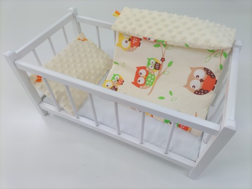 W komplecie z łóżeczkiem znajduje się 3-elementowa pościel: