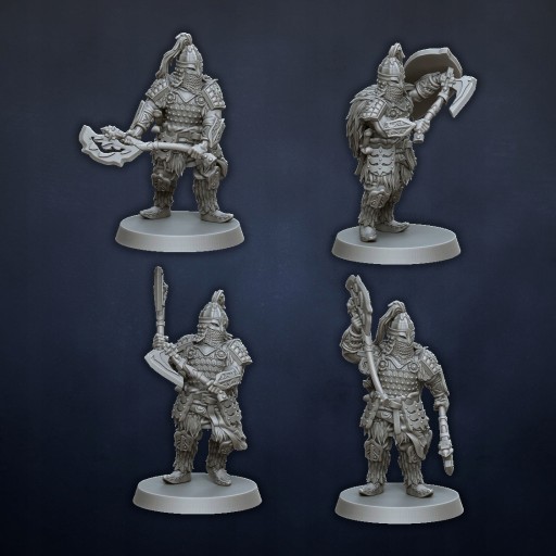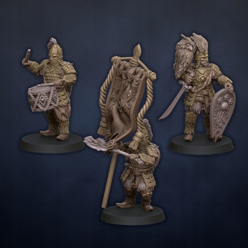 Przedmiotem oferty jest zestaw dziesięciu modeli Icekander Royal Guard CMD od Dragons Lake Miniatures, wydrukowanych na drukarce 3D w technologii SLA.