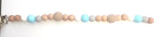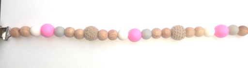 Mamy dla Ciebie propozycję - lekka drewniano-silikonowa zawieszka do smoczka z grawerowanym imieniem maluszka, dostępna w wielu kolorach łańcuszków.