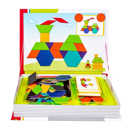 KSIĄŻKA MAGNETYCZNA SMILY PLAYSP83884 AN01Układanka magnetyczna w zamykanym pudełku w formie książki, które po otwarciu służy do układania magnetycznych puzzli.To świetna rozrywka dla twórczych dzieci z wyobraźnią.Zawiera 140 kolorowych magnesów z elementami różnego rodzaju figur geometrycznych, oraz 30 kart z przykładowymi ilustracjami , które można stworzyć z magnesów.Rozwija kreatywność i wyobraźnię oraz koordynację ręka- oko.