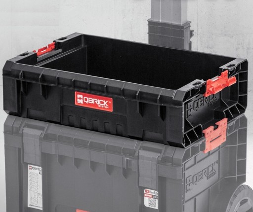 Modularny, wytrzymały pojemnik do przenoszenia narzędzi ręcznych, materiałów budowlanych, ale również do magazynowania zróżnicowanych przedmiotów np. w garażu lub domowym zapleczu.