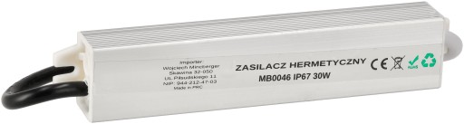 - Model: zasilacz LED wodoodporny IP67 2,5A 30W 12V
