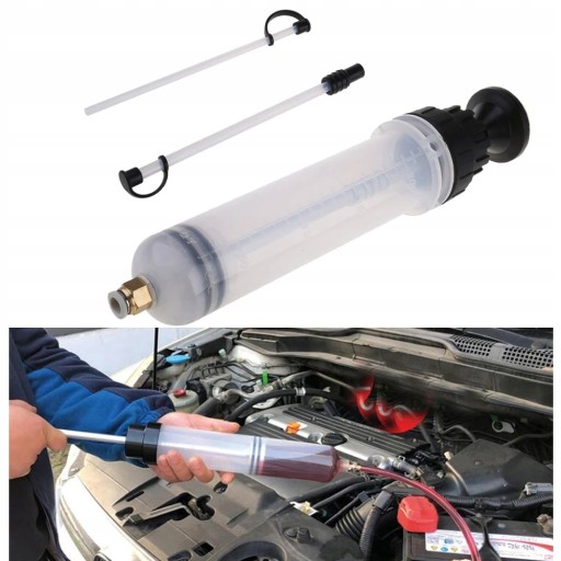 Idealny do wydobywania lub wymiany olejów silnikowych lub smarów w quadach, łodziach, sprzęcie rolniczym, przemysłowych skrzyniach biegów, pojazdach silnikowych, przyczepach kempingowych itp. Półprzezroczysty cylinder do sprawdzania dokładnej objętości płynu i ogólnego stanu płynu.