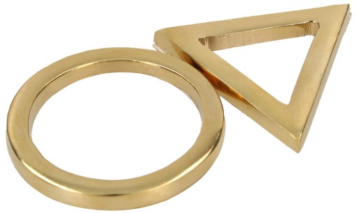 - Kółko i trójkąt zostały wykonane w 100% z czystego mosiądzu.