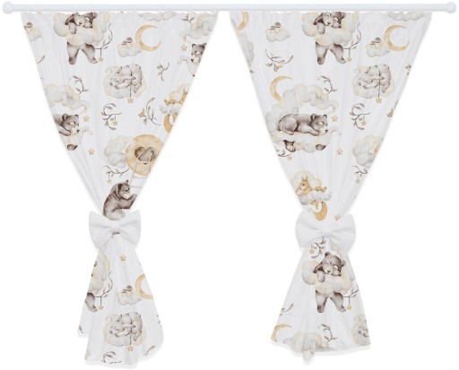 Zasłonki z kokardą w ślicznych wzorach będą ozdobą każdego dziecięcego pokoju.