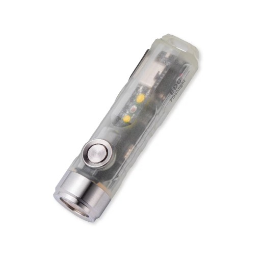Akumulator i USB-C. Latarka posiada wydajny akumulator o pojemności maksymalnej 330 mAh, co daje 72 h czasu pracy w najniższym trybie (Monlight). Ładowanie następuje po przez port USB-C. Latarka posiada wskaźnik procesu ładowania, oznajmiający pulsującym kolorem niebieskim trwanie procesu ładowania, a ciągłym kolorem zielonym, pełne naładowanie akumulatora. Kiedy akumulator jest na skraju wyczerpania wskaźnik zasygnalizuje rozładowanie świecąc się na kolor czerwony.