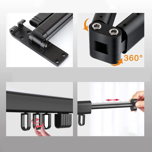 - 🩳 【Haczyk na ubrania jest składany i zajmuje mało miejsca】: Składaną suszarkę można obracać o 180° od lewej do prawej. Regulowane ramię pomocnicze o 360°, unikalna konstrukcja pozwala powiesić większość ubrań, a także można je łatwo zainstalować na różnych ścianach lub narożnikach wewnątrz i na zewnątrz. Unikalna konstrukcja sprawia, że ten wieszak zajmuje bardzo mało miejsca. Obróć go bliżej ściany, gdy nie jest używany.