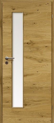 Drzwi o konstrukcji płytowej, oklejone naturalnym fornirem. Krawędzie drzwi zdobi naturalne drewno. Wypełnienie drzwi stanowi płyta wiórowa wielootworowa, wysoko prasowana. Drzwi są uszlachetnione podwójną warstwą oleju o podwyższonym parametrze odporności na ścieranie, przyjaznym dla zdrowia i środowiska.