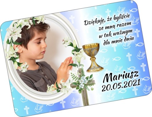 Благодарность гостям Магнит на крещение перед первым причастием 10х7