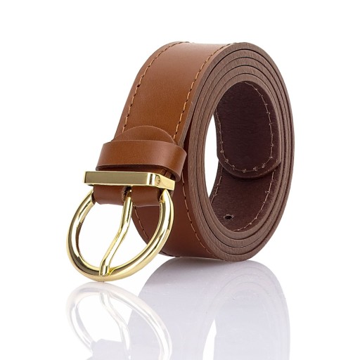 SKÓRZANY damski pasek z metalową ZŁOTĄ klamrą, która idealnie pasuje do wszystkich szlufek spodni. Może również stanowić świetne dopełnienie sukienki, tuniki lub swetra, jako stylowy dodatek podkreślający talię. OKRĄGŁY kształt dodaje klamrze charakteru. Rodzaj i jakość zastosowanej klamry gwarantuje niezwykłą wygodę zapinania i noszenia paska. Pasek posiada minimalistyczną strukturę Oprócz tego sprzączka jest fajnym dodatkiem biżuteryjnym i podkreśli każdą stylizację.
