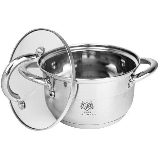 Garnki Karl Hausmann mają bardzo grube dno indukcyjne, odporne na deformację, zaś gruba warstwa aluminium gwarantuje równomierną dystrybucję ciepła, dzięki czemu wszystkie składniki gotują się równomiernie. Nitowane uchwyty z odlewu stalowego gwarantują bezpieczne użytkowanie oraz doskonale izolują ciepło i zabezpieczają przed poparzeniem.