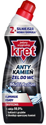 KRET Żel do WC MULTI ACTION. DZIAŁA BAKTERIOBÓJCZO I GRZYBOBÓJCZO. Do mycia i dezynfekcji muszli klozetowych, bidetów i pisuarów. Postać produktu: żel.