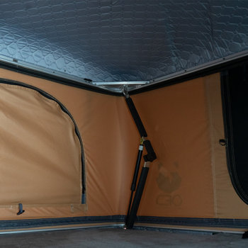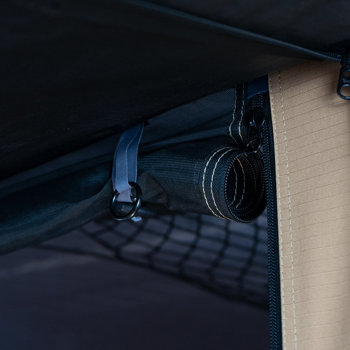 Dodatkowo namiot posiada dwa worki na buty zawieszone na zewnątrz przy wejściach, składane daszki po bokach oraz dużą siatkę pod sufitem, w której można przechowywać wszystkie niezbędne rzeczy. Wewnątrz znajdziesz jeszcze wiele dobrze zaprojektowanych kieszeni na wszystkie swoje rzeczy, takie jak laptop, latarka i inne akcesoria 4x4. Dach i podłoga są wyłożone matą antykondensacyjną, aby utrzymać suchość wewnątrz, a okna zabezpieczone moskitierą, aby zatrzymać owady na zewnątrz. Przygotuj się na najlepsze doświadczenie kempingowe z namiotem OFD ABS Shell Pop Up.