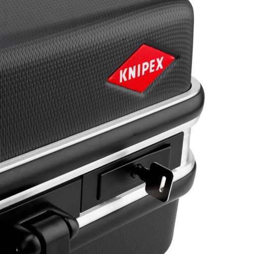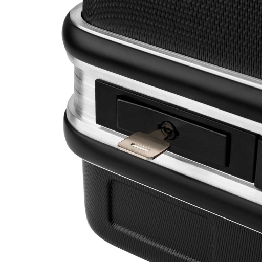 Wykonanie: z odpornego na zużycie i wilgoć tworzywa sztucznego ABS w kolorze czarnym, z wytrzymałymi tablicami narzędziowymi ze specjalnego tworzywa sztucznego, odpornego na zarysowania, odkształcenia i deformacje, działanie wilgoci, smarów i chemikaliów, stabilny uchwyt. Wysokość części spodniej 50 mm, z możliwością dowolnego podziału wnętrza. Z ocynkowanymi metalowymi zawiasami, wytrzymałość obciążeniowa walizki do 15 kg, rama aluminiowa. Bardzo stabilna, ze ślizgaczami zabezpieczającym spód. Miejsce na etykietę z dwiema naklejkami do indywidualnej identyfikacji. Zamykanana 2 klawiszowe zamki naciskowe i zamek szyfrowy z kodem 3-cyfrowym.