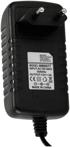 - Model: zasilacz wtyczkowy 3 A 36 W