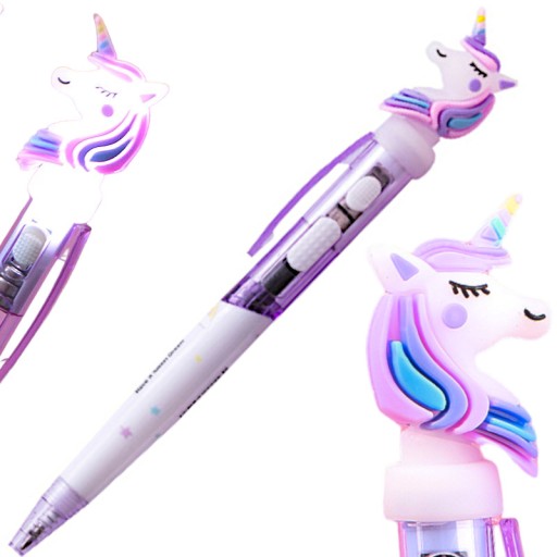 Ciekawy długopis, gadżet to doskonały pomysł na wyjątkowy prezent. Wyróżnij się z tłumu i podziwiaj piękny kolorowy długopis z figurka w kształcie jednorożca, dla jeszcze większego efektu WOW został wyposażony w latarkę. Wystarczy nacisnąć przycisk.