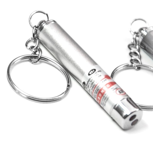 - Laser czerwony na breloku jest bardzo łatwy w obsłudze. Wystarczy nacisnąć przycisk, aby aktywować światło laserowe lub latarkę. Laser jest również wyposażony w baterię 3x AG3, która jest łatwa do wymiany.