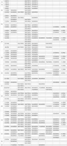 Tabela zamienników opon rolniczych