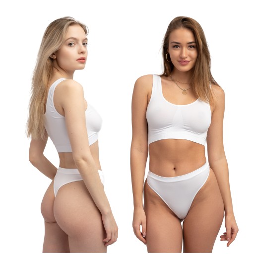 Uwaga: Prosimy pamiętać o tym, że bielizna bezszwowa nie oznacza, że nie posiada ona jakichkolwiek szwów a jedynie ilość szwów ograniczona jest do niezbędnego minimum, najczęściej poprzez eliminację przeszyć poprzecznych na wysokości pasa. Bielizna nadal posiada inne szwy oraz wykończenia brzegów szwami.