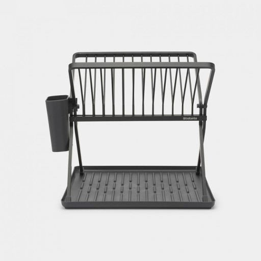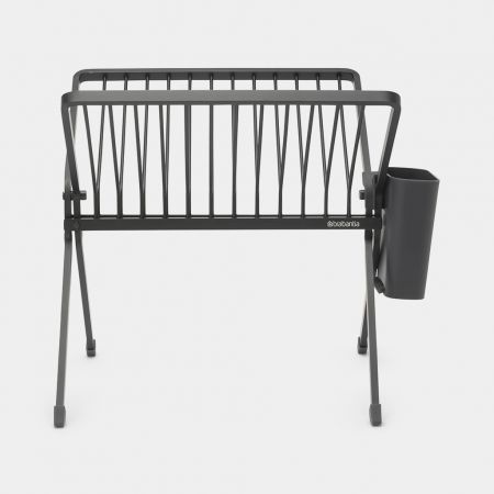 Brabantia Folding Dish Rack with drip-tray holds your plates, pots, pans and glassware. The basket for drying cutlery and utensils is removable, making it easy to collapse the rack and tidy it away. A really smart rack, beautiful enough to have a permanent spot in your kitchen, but also very compact to store.
